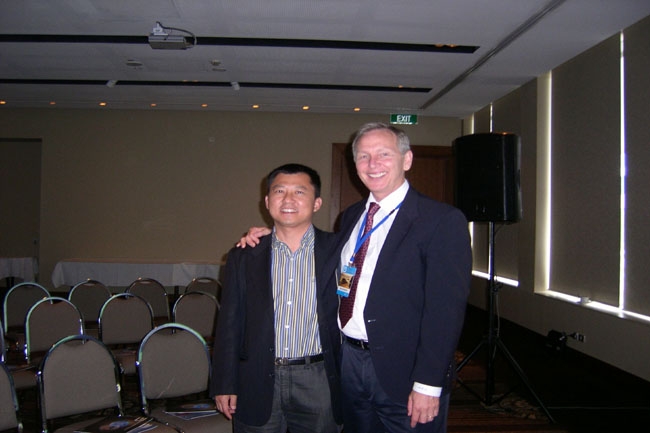 杜之渝(前排左二)与王铮(前排右二)等教授及卫生部领导、工作人员在准分子标准启动会上 杜之渝教授(右六)与美国“鹰眼计划负责人”Steven Schallhorn博士(右五)在美国2010年ASCRS国际眼科会议上的合影 杜之渝教授与美国“鹰眼计划负责人”Steven Schallhorn博士2009年在台湾合影留念 杜之渝教授与Steven Schallhorn博士在澳大利亚第 23届亚太眼科屈光及白内障年会(APACRS)上的合影 杜之渝教与美国“鹰眼计划负责人”Steven Schallhorn博士及美国同道2012年在ASCRS会上交流 杜之渝教授与美国“鹰眼计划负责人”Steven Schallhorn博士2013年在欧洲眼屈光年会上合影留念