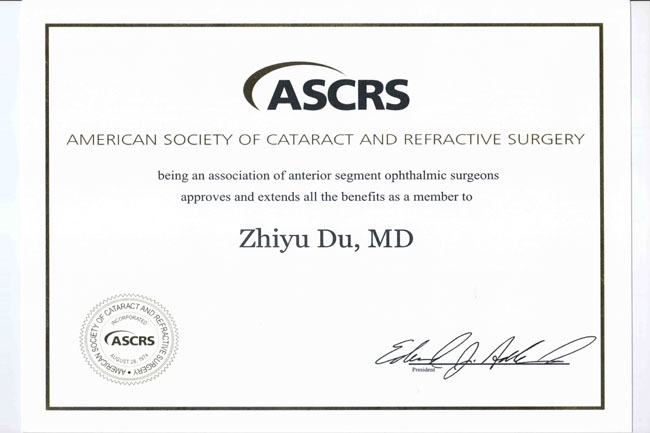 杜之渝教授美国白内障及眼屈光协会(ASCRS) 会员证