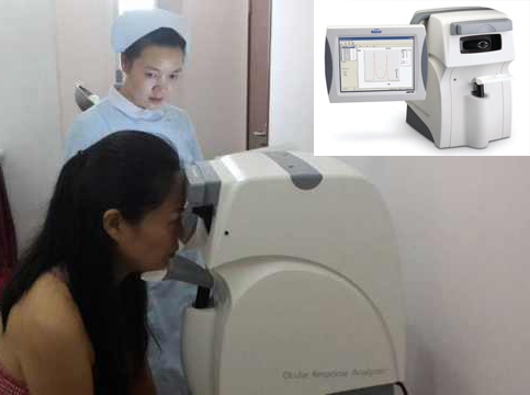 明达眼科医护人员正在为近视手术患者作ORA检查