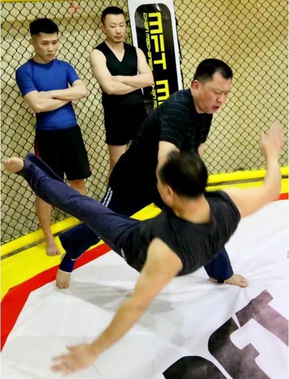 (脱下手术服的杜教授在散打现场犹如猛虎,让弟子招架不住)