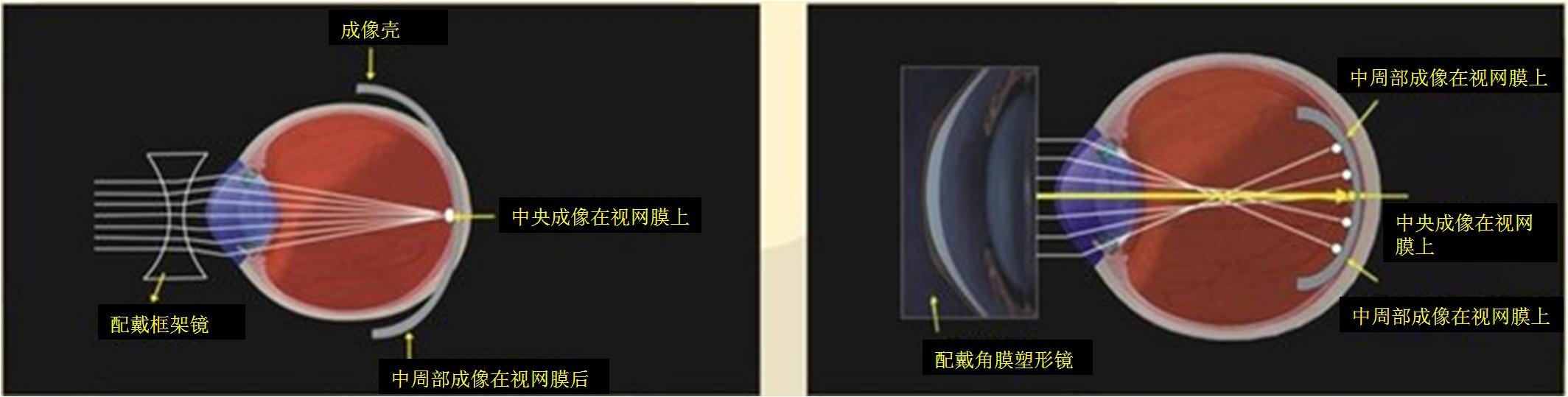 | 配戴角膜塑形镜控制近视加深示意图 |