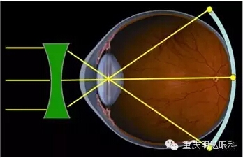 图1 通过镜片中央的光线聚焦在视网膜上,