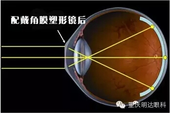 图2 配戴角膜塑形镜后,周边的光线也能聚焦在视网膜上,