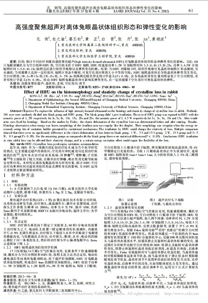高强度聚焦超声对离体兔眼晶状体组织形态和弹性变化的影响