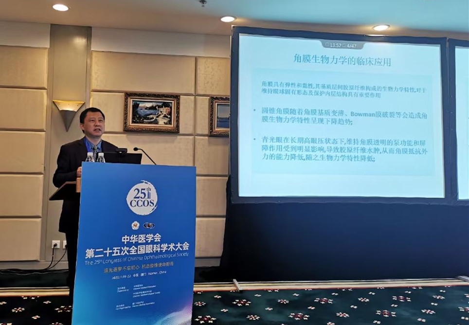 杜之渝教授进行了题为《角膜屈光生物力学和眼压测量在角膜重塑安全性中扮演的重要角色》