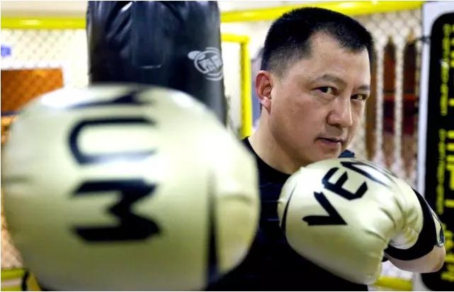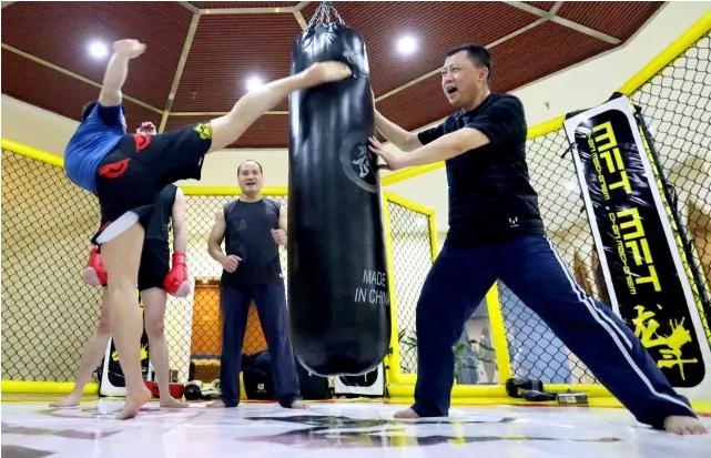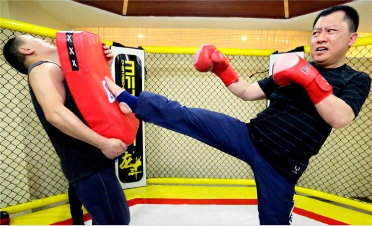 (脱下手术服的杜教授在散打现场犹如猛虎,让弟子招架不住)