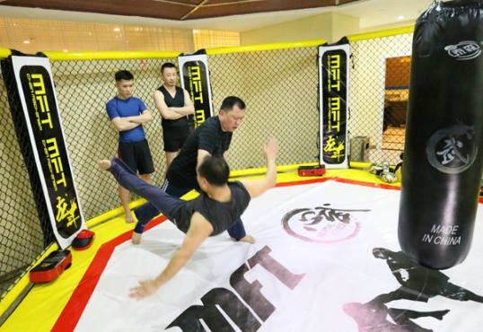 杜之渝在指导徒弟练习搏击
