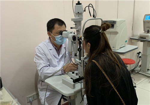 杜之渝教授为患者检查眼睛。院方供图