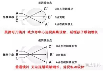 美德可儿镜片吸取了角膜塑形镜作用原理的精华,将其周边离焦的作用融入到镜片设计中,通过国家专利保护技术减少儿童周边远视性离焦,从而有效控制眼轴增长。由复旦大学附属眼耳鼻喉科医院、卫生部近视眼重点实验室牵头的多中心临床研究证实,美德可儿镜片较传统镜片能有效控制近视进展、减缓眼轴增长。
